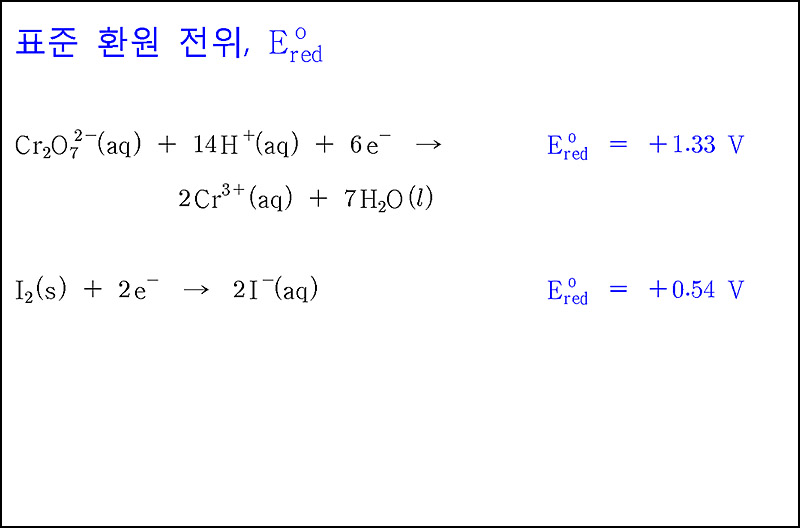 표준 환원 전위 도표에 나오는 반응식의 계수와