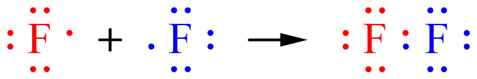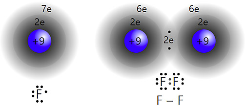 [ 그림 출처 Wikimedia ] The two fluorine atoms form a stable F2 molecule by sharing two electrons.