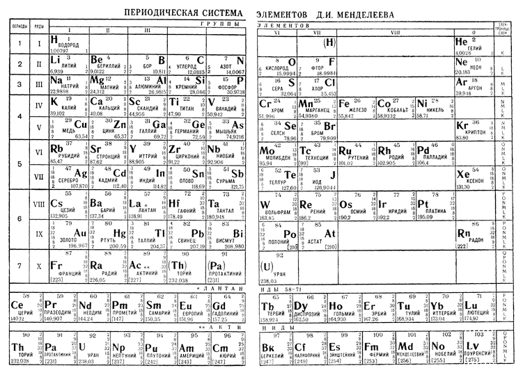 [그림] Periodic table in short form (1962). 단주기형 주기율표.