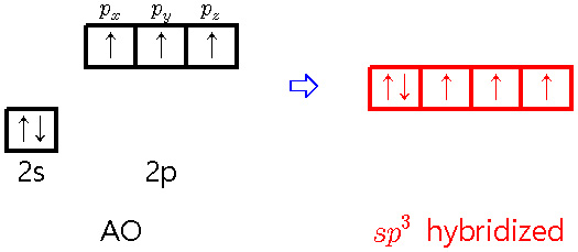 > 3개의 시그마 결합(σ-bond) 형성 + 1개의 고립 전자쌍(lone pair)