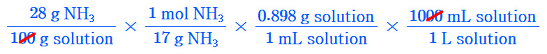 [ 관련 글 https://ywpop.tistory.com/4242 ] 28% NH3 시약(d 0.898, FW 17)의 몰농도