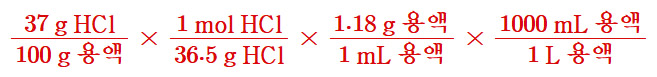 [ 관련 글 https://ywpop.tistory.com/18635 ] 37% 염산 시약(d 1.18, FW 36.5)의 몰농도