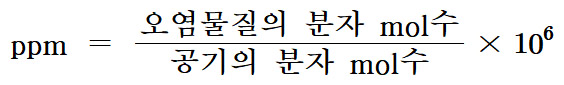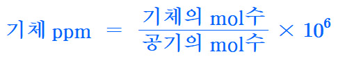 ppm = (오염물질의 mol수 / 공기의 mol수) × 10^6